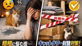猫の粗相に悩み、ベッドを守るためキャットタワーを一時封鎖した体験談。感情的になりすぎず、環境調整で乗り切ったリアルな対処法と、猫と無理なく暮らすヒントをまとめています。