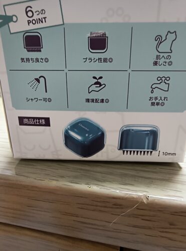 というわけで買いました!高レビューのシリコン製ブラシです。って「しぃ」ちゃんのパンチがさく裂!こうしてテーブルの上のものをことごとく落としていくのです…。