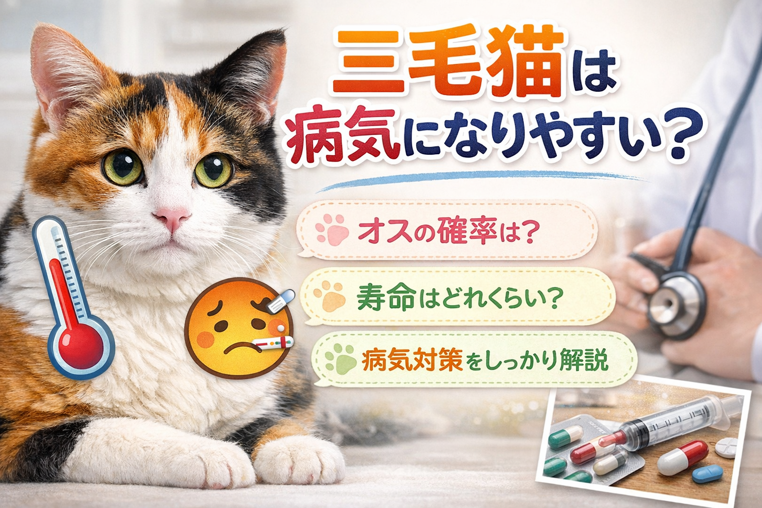 この記事では、三毛猫の体質やオスの希少性といった基本知識から、かかりやすい病気、見逃してはいけないサイン、日常でできる予防までをわかりやすく解説します。