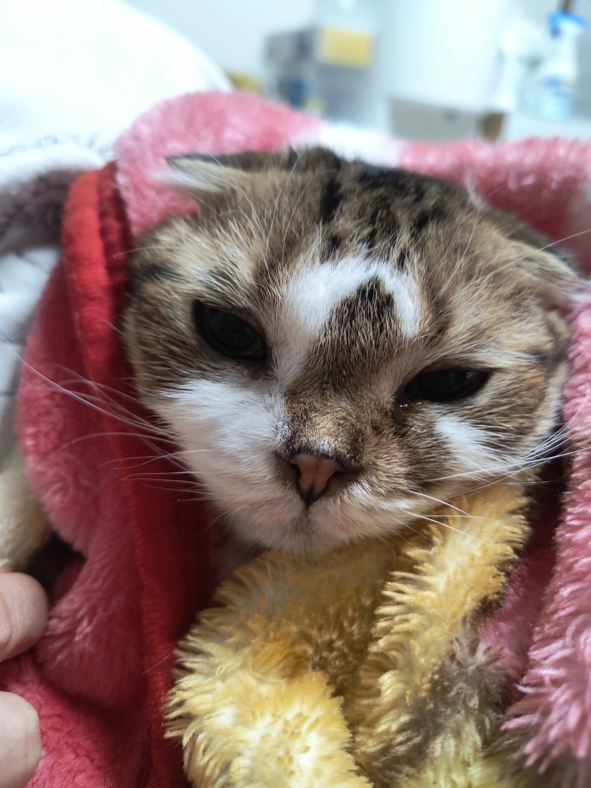 ちなみにこの「おくるみ」状態を私は「赤ずきん」ちゃんと呼んでいます。私と「カイ」ちゃんとはあまり仲良くはないんですが、この時ばかりは超かわいい。と思ってます。いえ、普段からかわいいと思ってますよ?