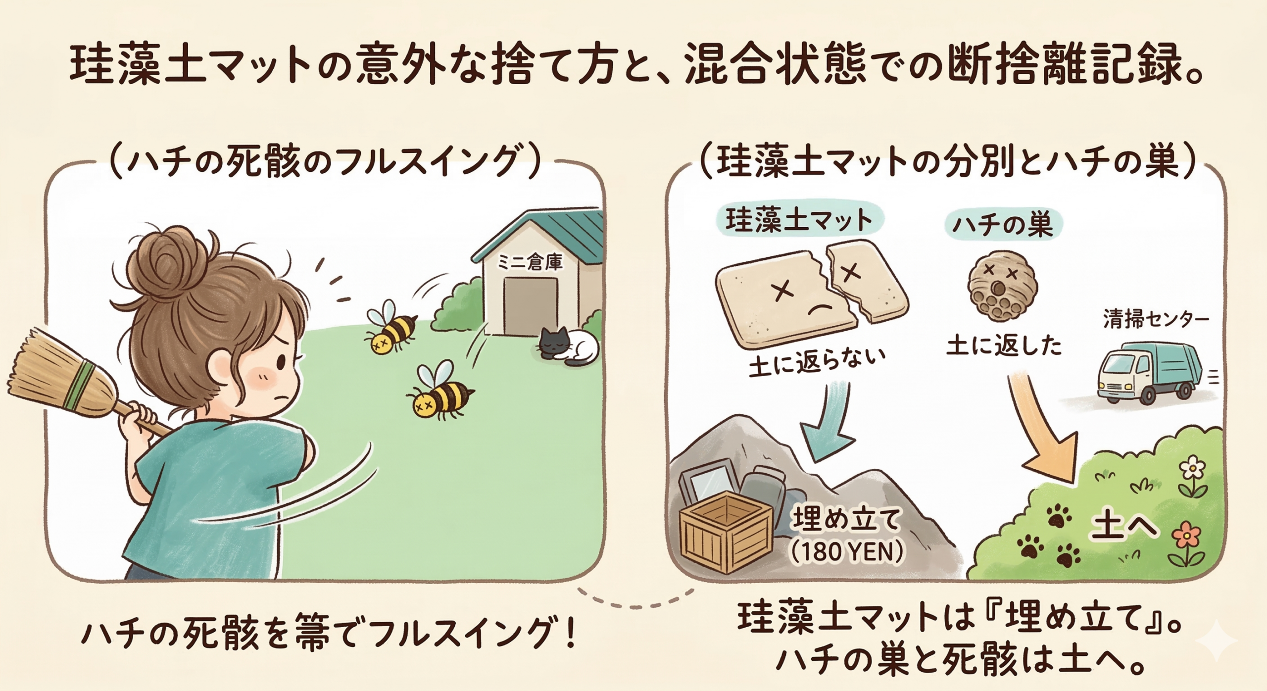 珪藻土マットは「土」に返らない!? 清掃センターで知った衝撃の分別と、混合状態だからこそできたハチのフルスイング