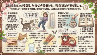 双極性障害の「混合状態」から救ってくれた、母の「自宅入院」という言葉。健常者の普通を追い求めず、療養を優先する勇気と、叔母との健全な境界線の引き方を綴ります。15歳の愛猫がぎっくり腰に?名医との二人三脚や5kgのしぃちゃんの減量フード奮闘記も公開。